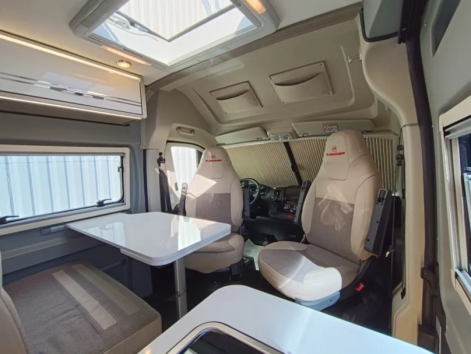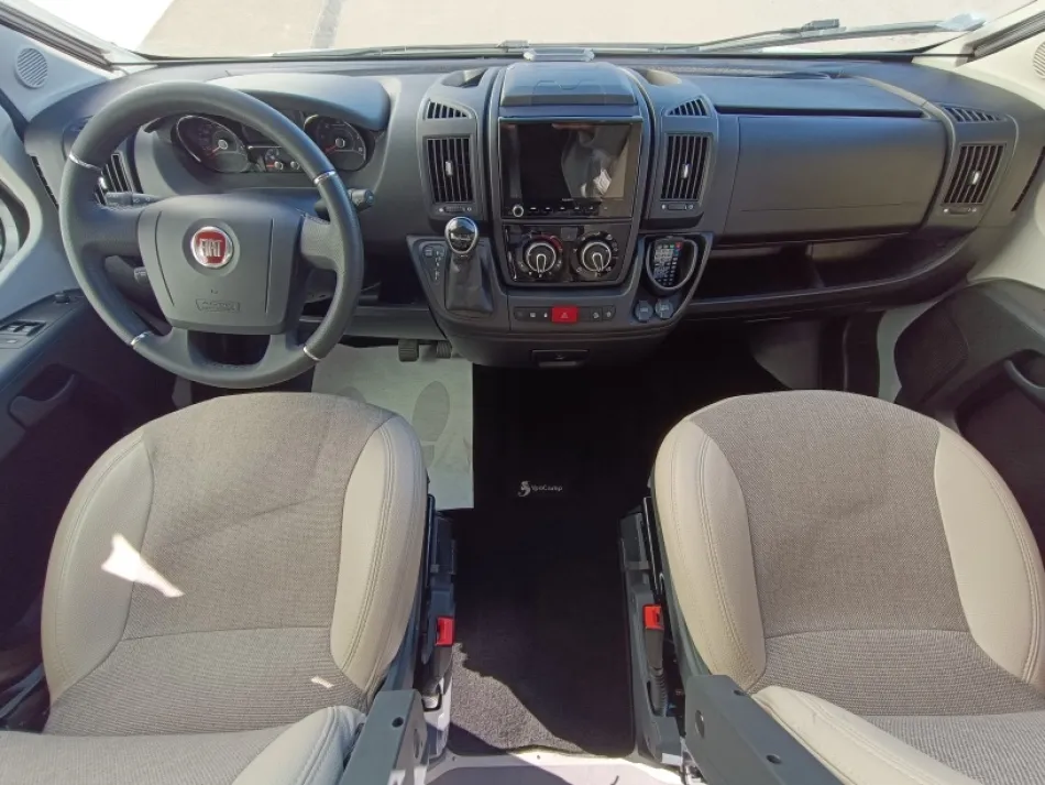 Implanté sur le porteur Fiat Ducato 2.3 L – 160 ch, avec boîte automatique, il offre une conduite puissante, fluide et particulièrement agréable, idéale pour les longs trajets comme pour une utilisation régulière.