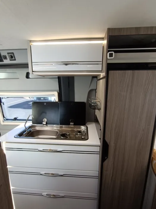Son aménagement intérieur bien pensé propose un espace de vie fonctionnel, des rangements optimisés et un excellent niveau de confort pour profiter pleinement de chaque escapade.